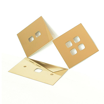The switch panels are made of copper with welded studs on back that finished by polishing and plating.The required stamping processes are blanking, piercing and forming.The standard packaging is by carton box with wooden pallet.Any OEM stamping product is welcomed!